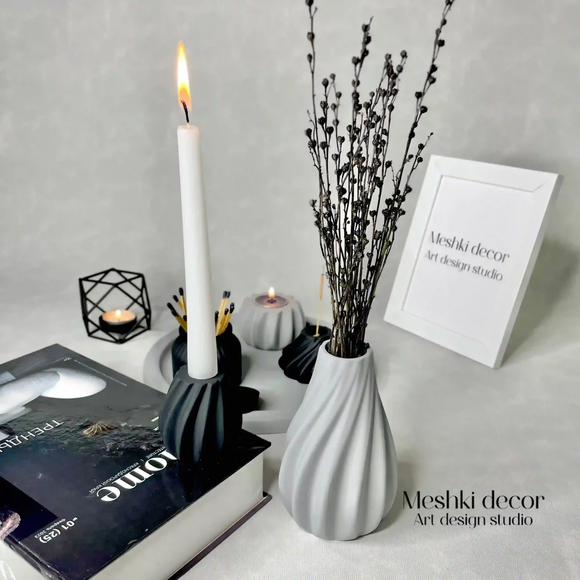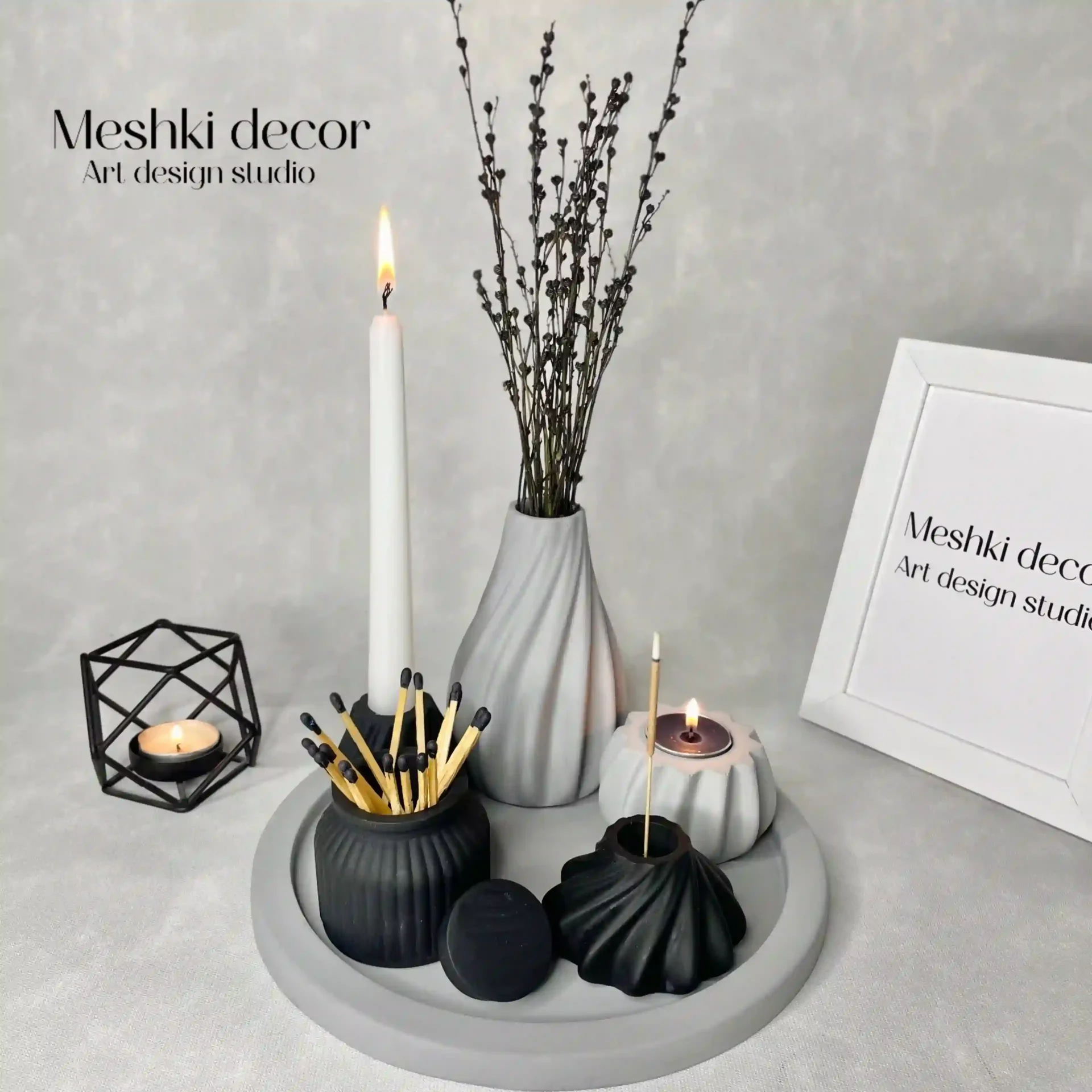 ست دکوری رومیزی طوسی مشکی مدل سرمه از برند مشکی دکور، انتخابی بینظیر و اقتصادی برای افزودن آرامش و زیبایی به دکوراسیون شماست. با جنس سنگ مصنوعی و رنگهای طوسی و مشکی، همراه با امکان سفارشیسازی، این مجموعه هم کاربردی است و هم تزئینی. این ست با طراحی مینیمال و همهکارهاش، هدیهای فوقالعاده برای هر مناسبتی است.