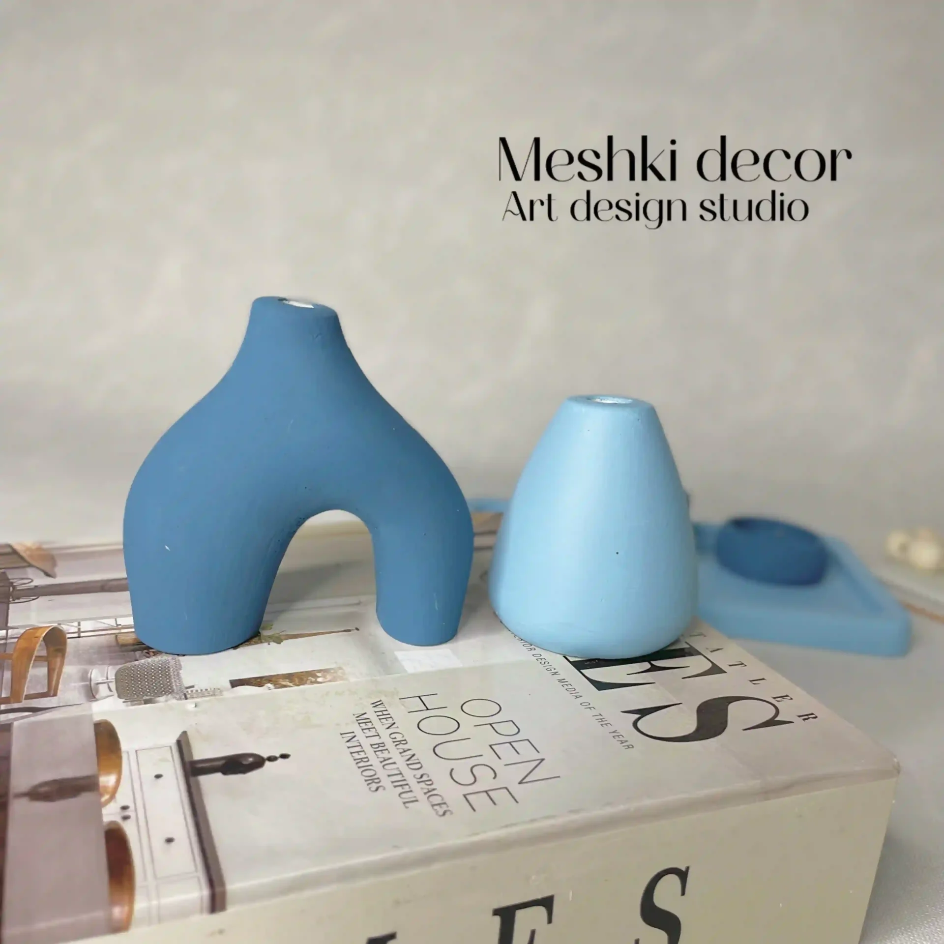 ست دکوراتیو جا عودی و جا شمعی مدل پافیلی از برند مشکی دکور، انتخابی بی‌نظیر و اقتصادی برای افزودن آرامش و زیبایی به دکوراسیون شماست. با جنس سنگ مصنوعی و رنگ‌های آبی روشن و تیره، همراه با امکان سفارشی‌سازی، این مجموعه هم کاربردی است و هم تزئینی. این ست با طراحی مینیمال و همه‌کاره‌اش، هدیه‌ای فوق‌العاده برای هر مناسبتی است. چه در یک آپارتمان مدرن و چه در خانه‌ای با سبک بوهو، این محصول اقتصادی جلوه‌ای دل‌انگیز به میزهای شما می‌بخشد و فضایی معطر و دعوت‌کننده خلق می‌کند. برای مشاهده محصولات بیشتر یا سفارش رنگ‌های سفارشی، با ما در ارتباط باشید!و همچنین جهت مشاهده محصولات بیشتر و اطلاع از تخفیف های لحظه ای پیج اینستاگرام ما رو دنبال کنید .