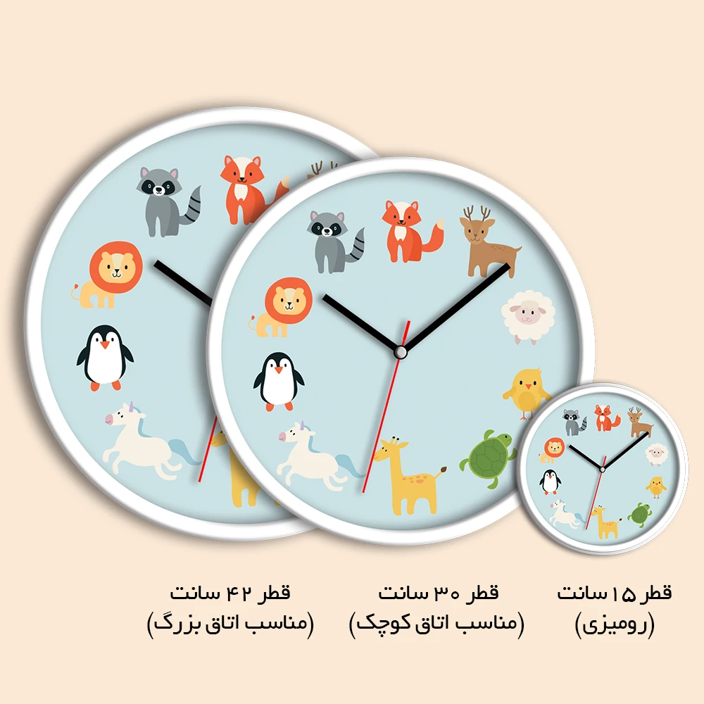 ساعت دیواری و رومیزی اتاق کودک با موتور آرامگرد کوارتز، گزینه‌ای اقتصادی و جذاب برای تزئین و نشان دادن زمان در فضاهای مختلف مانند دیوار، میز یا قفسه است. این ساعت با فریم سفید جنس سنگ مصنوعی و طراحی بدون شیشه، ظاهری روشن و طبیعی دارد که حس سادگی و شادابی را به محیط می‌افزاید و با اندازه‌های متنوع، برای اتاق‌های بزرگ، متوسط یا فضاهای کوچک مناسب است. طراحی مینیمال و رنگ سفید، آن را با دکوراسیون‌های مدرن، اتاق پسر یا اتاق دختر سازگار می‌کند و برای والدینی که به دنبال دکوراسیونی ایمن و زیبا برای کودکان هستند، انتخابی بی‌نظیر است. امکان سفارشی‌سازی رنگ، این ساعت را به گزینه‌ای انعطاف‌پذیر برای دکور یا هدیه تبدیل می‌کند.