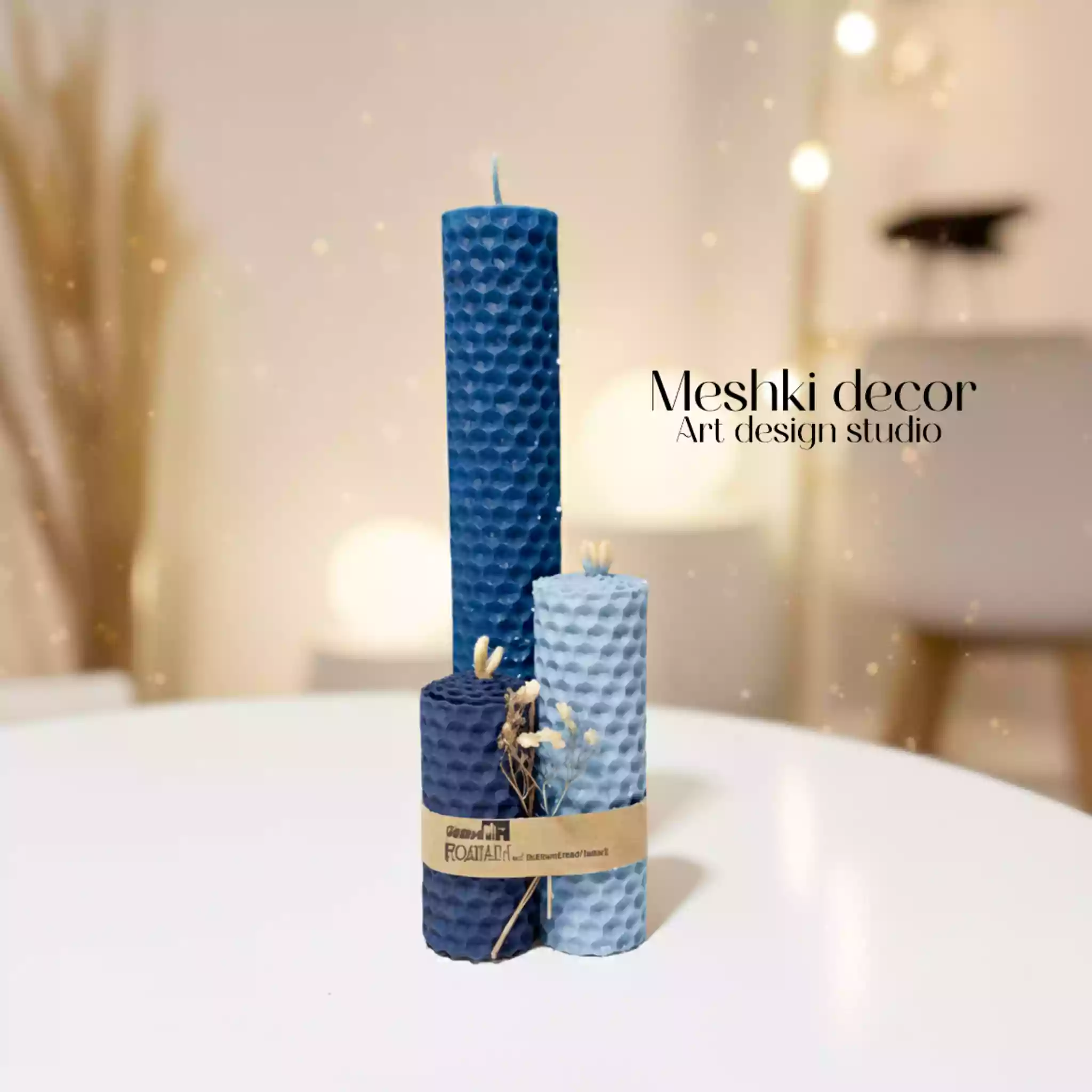 ابعاد: ارتفاع ۲۰ سانتی‌متر (قطر تقریبی ۳ سانتی‌متر برای هر شمع)