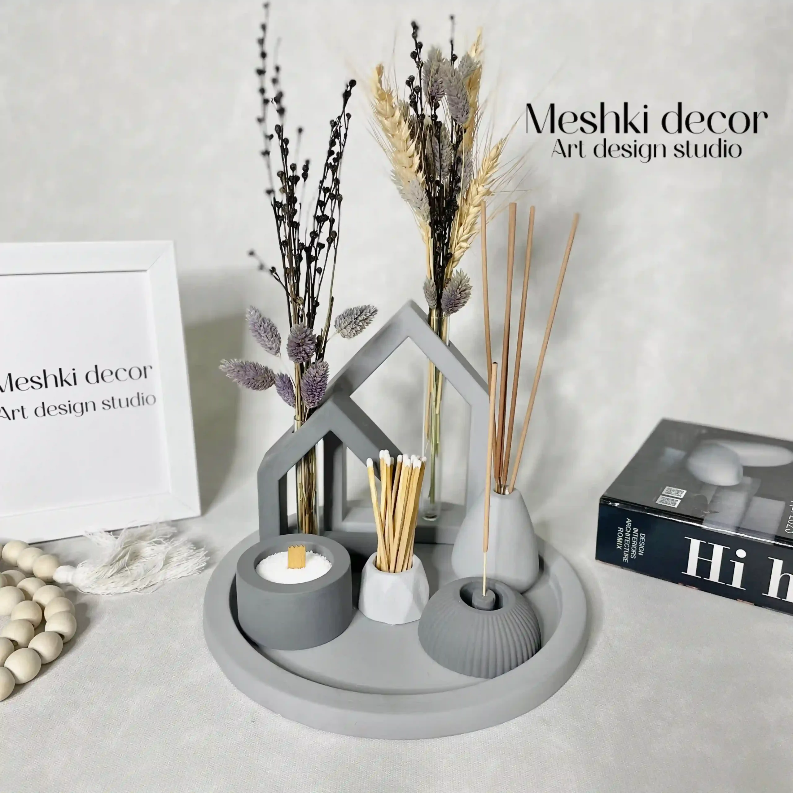این ست با طراحی مینیمال و رنگهای طوسی تیره و روشن، با سبکهای متنوعی سازگار است. در دکوراسیون مدرن، ترکیب آن با مبلمان ساده، ظاهری شیک میسازد؛ در سبک بوهو، گلجاهای خانه با تزئینات طبیعی حس گرمی میدهند. عود سوز و جا عودی با رایحه و سادگی، آرامش را به فضا میآورند و سینی دایره تعادل را به چیدمان شما میبخشد. این ست اقتصادی برای دکوراسیون منزل، دکوراسیون داخلی، دکوراسیون اتاق خواب یا هدیه گزینهای ایدهآل است.