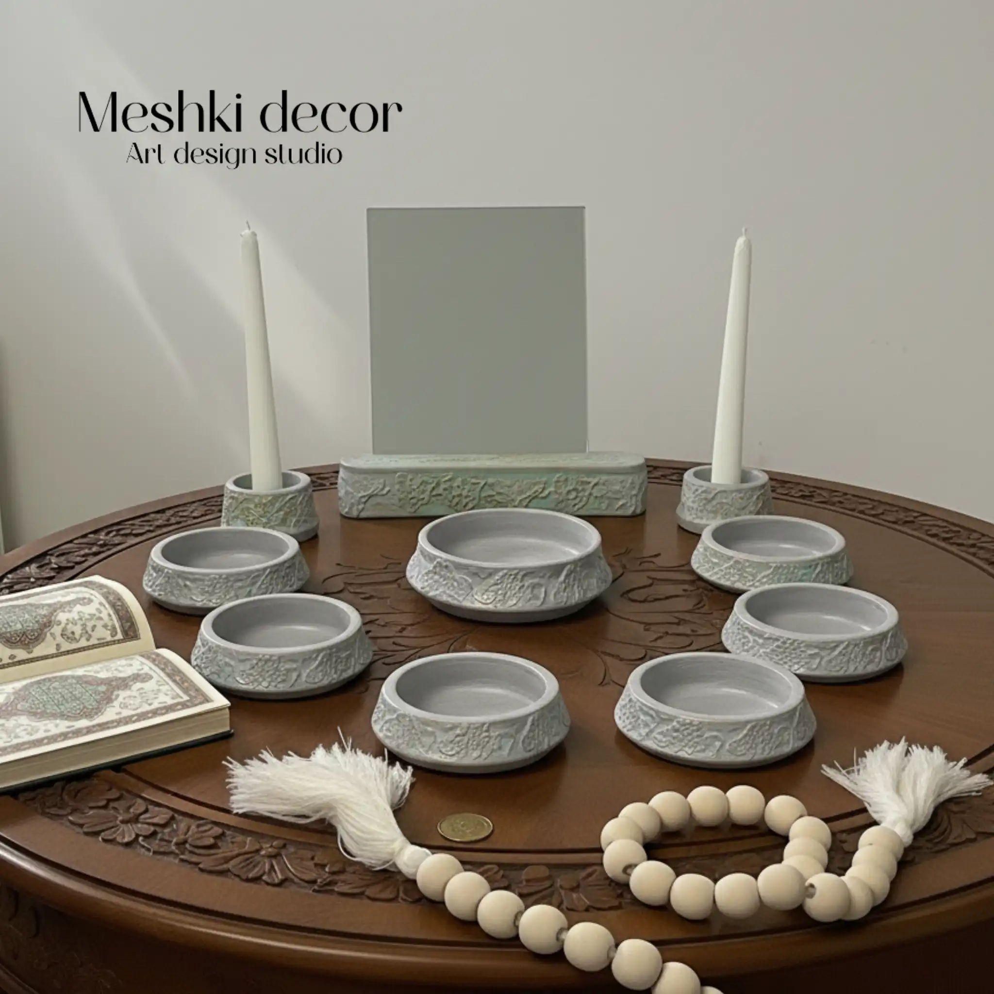 هفتسین سنتی مدل گلدار از برند مشکی دکور، انتخابی بینظیر و جذاب برای چیدمان نوروزی شماست. با ۱۰ پارچه شامل ۶ ظرف ۹ سانتیمتر، ظرف سبزه ۱۳ سانتیمتر، ۲ جا شمعی، پایه و آینه از جنس سنگ مصنوعی، همراه با طرح گل و برگ برجسته و ۳ رنگ کهنهکاریشده، این سینی هفتسین ایرانی کلاسیک هم سنتی است و هم مدرن. این هفتسین مینیمال با طراحی جدید، هدیهای عالی برای عید نوروز است. چه در خانهای کوچک داشته باشید و چه در فضایی بزرگ، این محصول جلوهای دلانگیز به عیدتان میبخشد و محیطی شاد، منظم و با اصالت خلق میکند. برای مشاهده محصولات بیشتر یا سفارش سفارشی، با ما در ارتباط باشید!