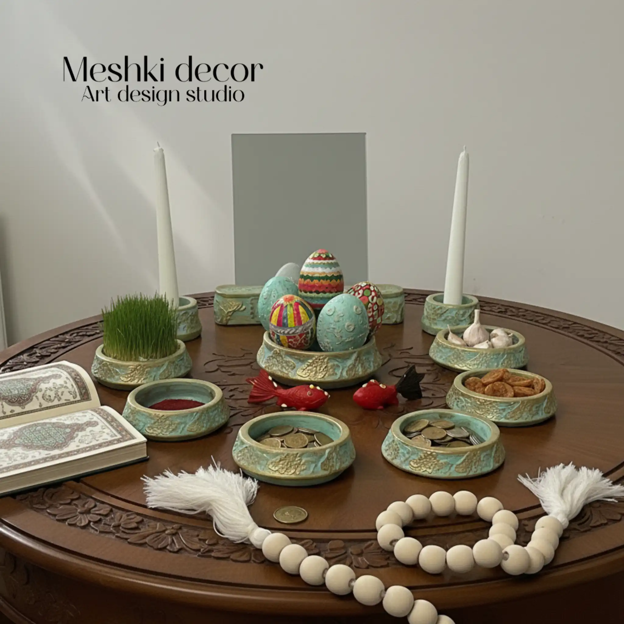 هفتسین سنتی مدل گلدار از برند مشکی دکور، محصولی کلاسیک و زیبا با طراحی اصیل ایرانی است که از جنس سنگ مصنوعی ساخته شده و با طرح گل و برگ برجسته، جلوهای طبیعی و سنتی به چیدمان نوروزی میبخشد. این مجموعه شامل ۶ ظرف قطر ۹ سانتیمتر، یک ظرف سبزه قطر ۱۳ سانتیمتر، ۲ عدد جا شمعی، پایه آینه و آینه (مجموع ۱۰ پارچه) است و در ۳ رنگ کرم کهنهکاری طلایی، سبز کهنهکاری طلایی و طوسی کهنهکاری نقرهای عرضه میشود. مناسب برای دکوراسیونهای سنتی، مینیمال یا نوروزی، این هفتسین ایرانی جدید گزینهای ایدهآل برای خانههای کوچک و بزرگ و هدیهای جذاب برای عید نوروز است.