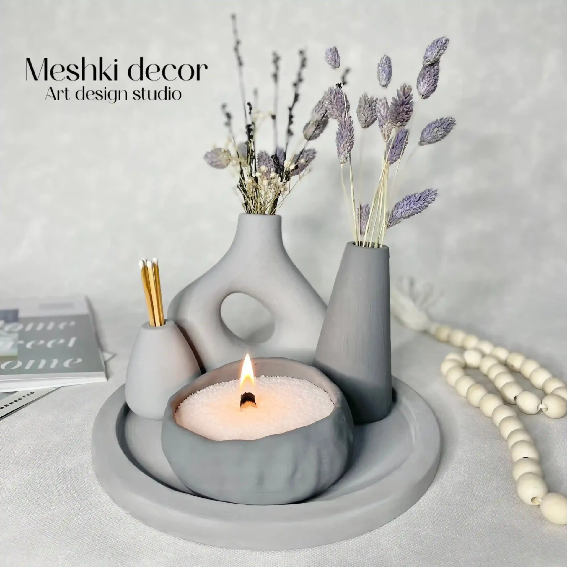 ست رومیزی دکوری طوسی مدل بیتا از برند مشکی دکور، انتخابی بی‌نظیر و اقتصادی برای افزودن آرامش و زیبایی به دکوراسیون شماست. با جنس سنگ مصنوعی و رنگ‌های طوسی تیره و روشن، همراه با امکان سفارشی‌سازی، این مجموعه هم کاربردی است و هم تزئینی. این ست با طراحی مینیمال و همه‌کاره‌اش، هدیه‌ای فوق‌العاده برای هر مناسبتی است. چه در یک آپارتمان مدرن و چه در خانه‌ای با سبک بوهو، این محصول اقتصادی جلوه‌ای دل‌انگیز به میزهای شما می‌بخشد و فضایی معطر و دعوت‌کننده خلق می‌کند.
