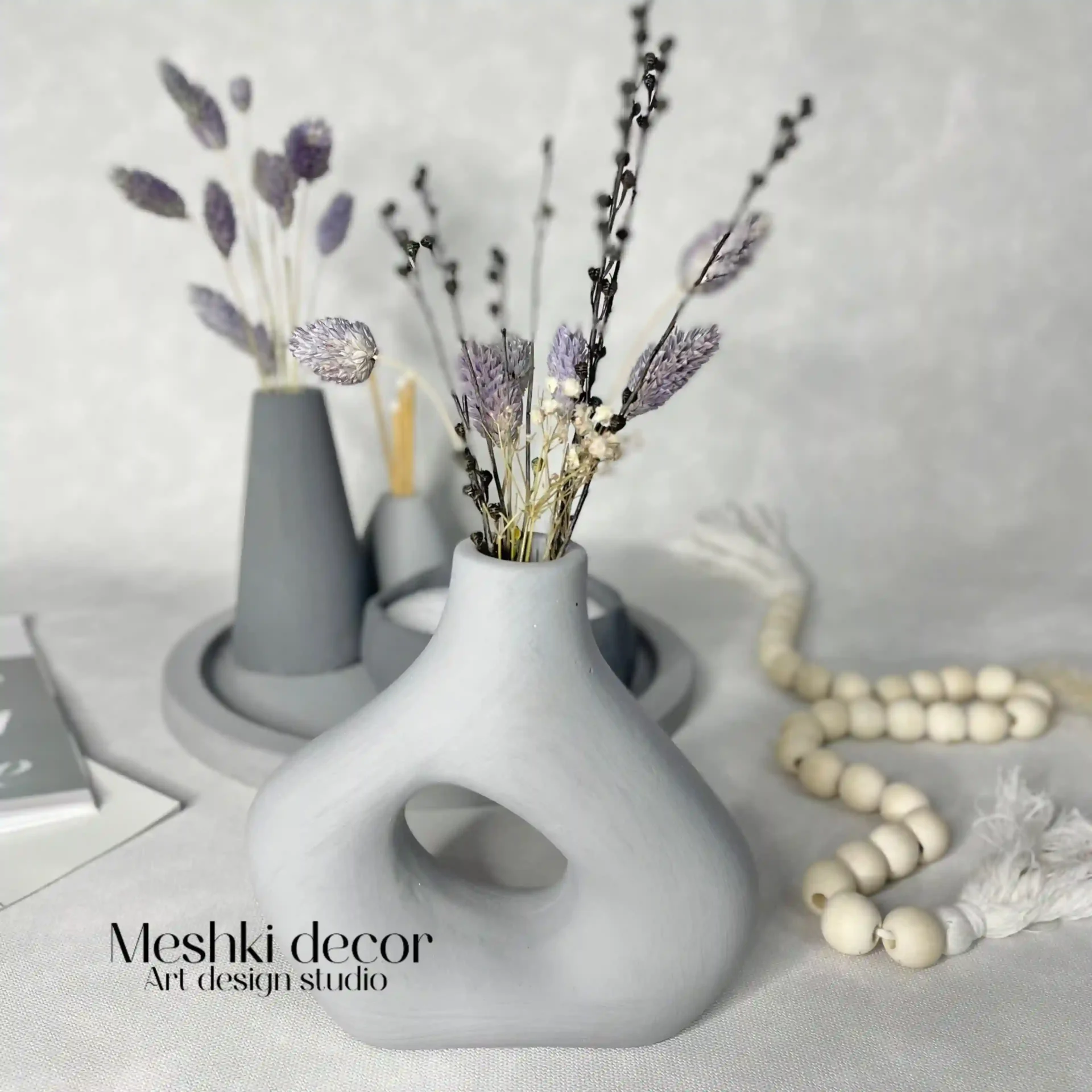 ست رومیزی دکوری طوسی مدل بیتا از برند مشکی دکور، مجموعه‌ای شیک و مینیمال با طراحی خلاقانه است که از جنس سنگ مصنوعی ساخته شده و جلوه‌ای مدرن و متعادل به دکوراسیون شما می‌بخشد. این ست در رنگ‌های طوسی تیره و طوسی روشن عرضه می‌شود و با ترکیب کاربردی و تزئینی، فضایی آرام و شیک ایجاد می‌کند. این محصول اقتصادی به‌راحتی با سبک‌های مدرن، مینیمال یا بوهو هماهنگ می‌شود و هدیه‌ای ایده‌آل برای دوستداران دکوراسیون‌های نوآورانه است.
