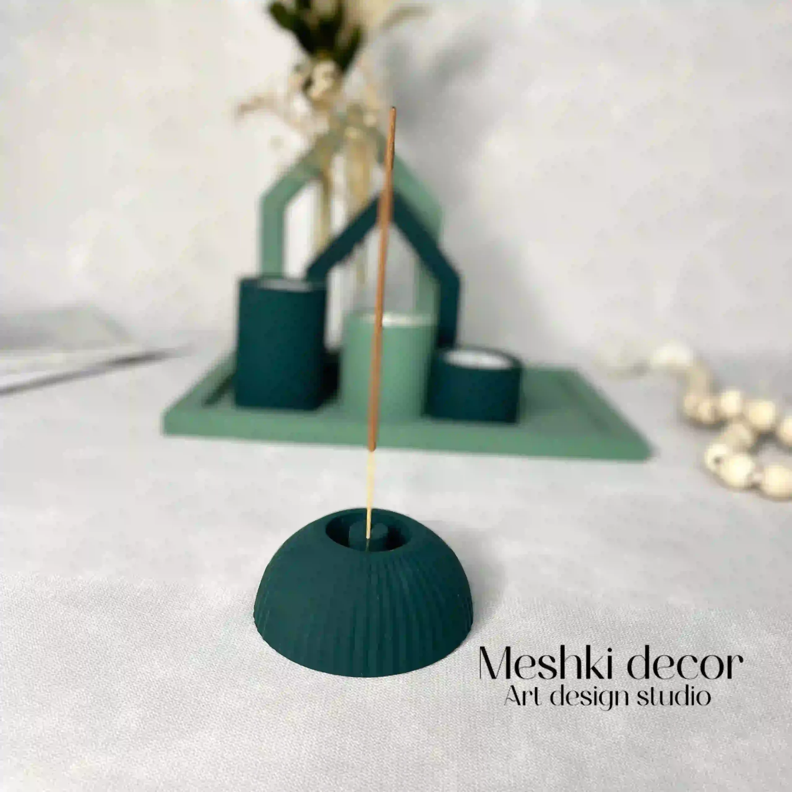 عود سوز گنبدی شیار دار با رنگ سبز تیره، رایحه ملایمی با سوختن عود تولید میکند و برای فضاهای آرامشبخش عالی است. این قطعه با طراحی شیار دار، جذابیت بصری را افزایش میدهد.