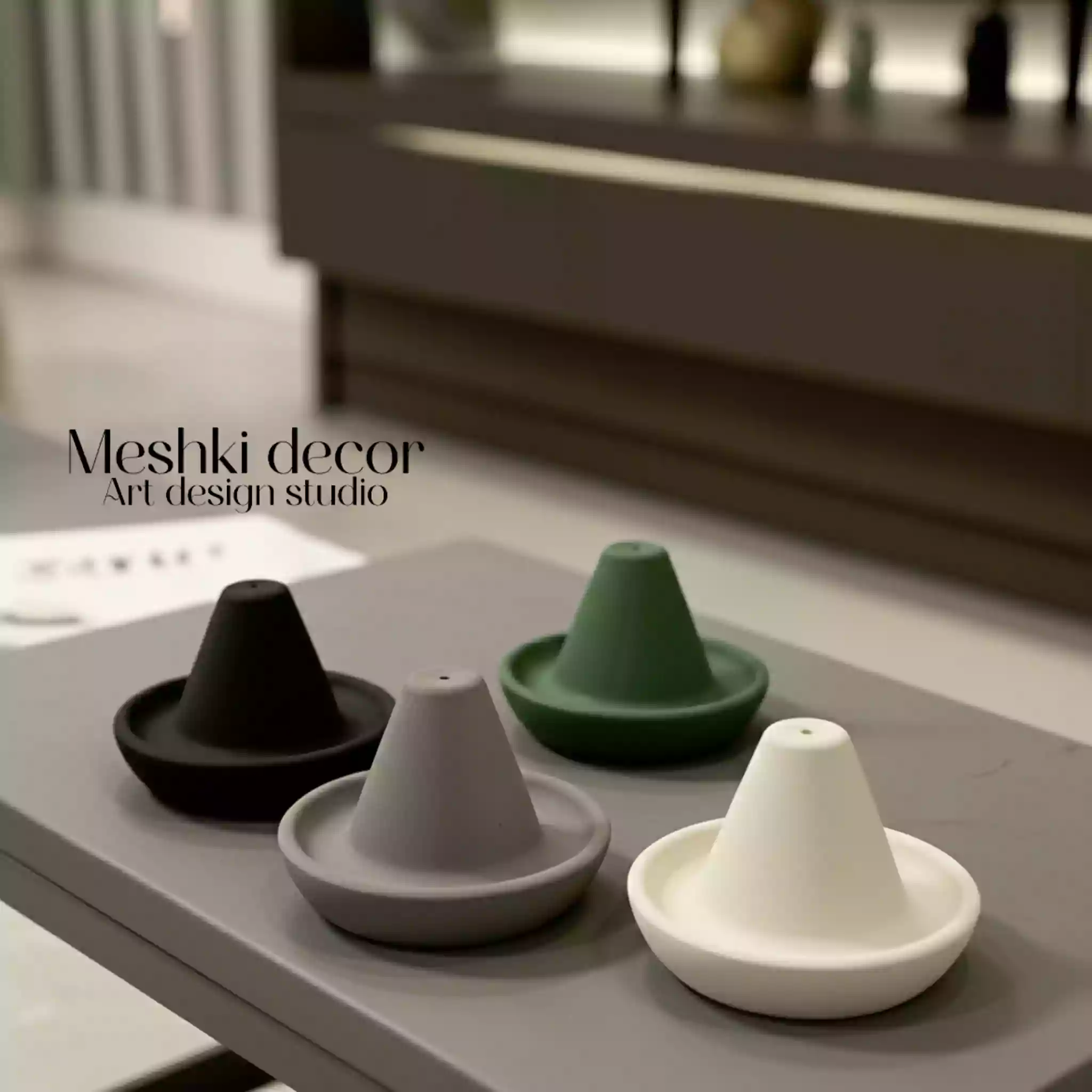 عود سوز سنگ مصنوعی مدل هرم از برند مشکی دکور، انتخابی بینظیر و اقتصادی برای افزودن عطر و زیبایی به دکوراسیون شماست. با تنوع رنگی سفید، طوسی، نسکافهای، سبز، سبز تیره و مشکی، همراه با طراحی هرمی و سطح صاف، این محصول هم تزئینی است و هم کاربردی.
