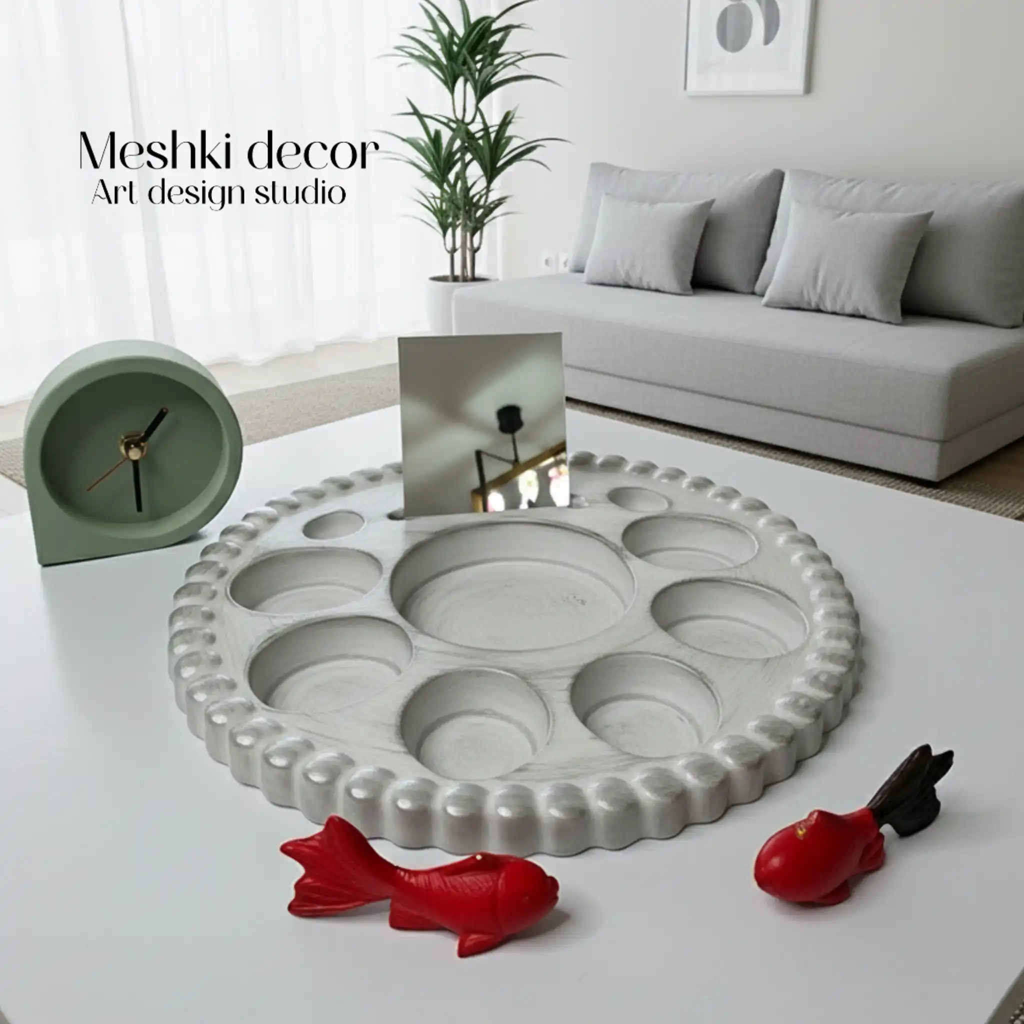 هفت‌سین گرد اقتصادی مدل یکجا از برند مشکی دکور، محصولی کاربردی و شیک با طراحی مینیمال است که از جنس سنگ مصنوعی ساخته شده و با قطر ۳۳ سانتی‌متر، فضای کاملی برای چیدمان هفت‌سین در یکجا فراهم می‌کند.